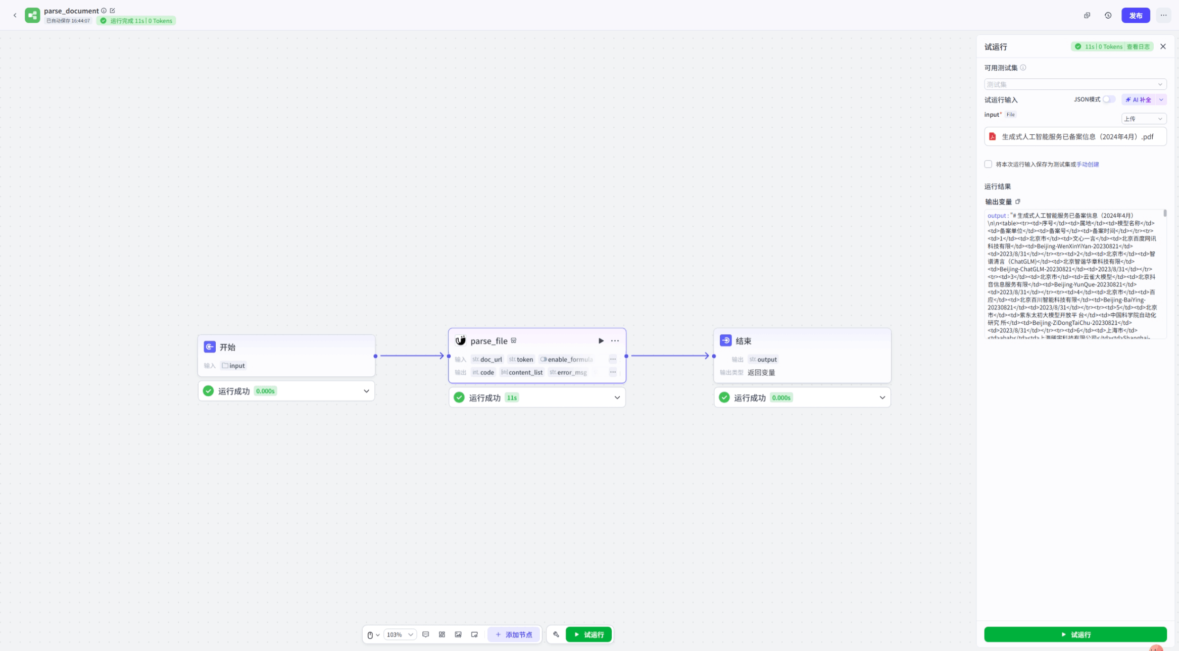 +#### 第五步:增加中间节点“代码执行”来转换MinerU的解析结果