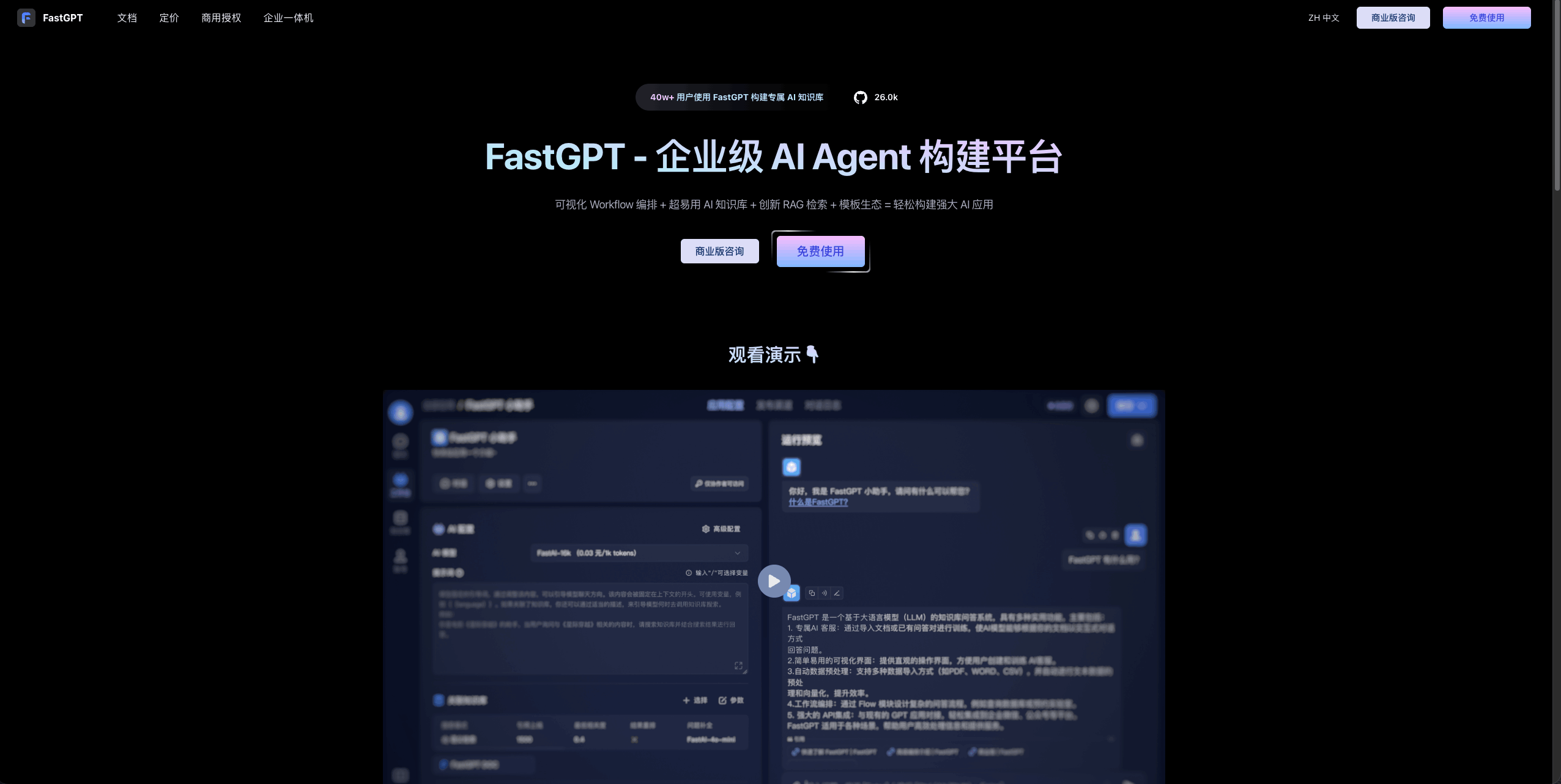 +- 官网地址:https://fastgpt.cn