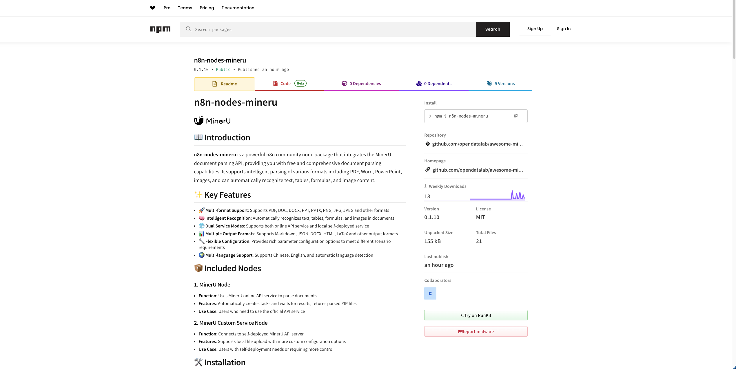 https://www.npmjs.com/package/n8n-nodes-mineru
