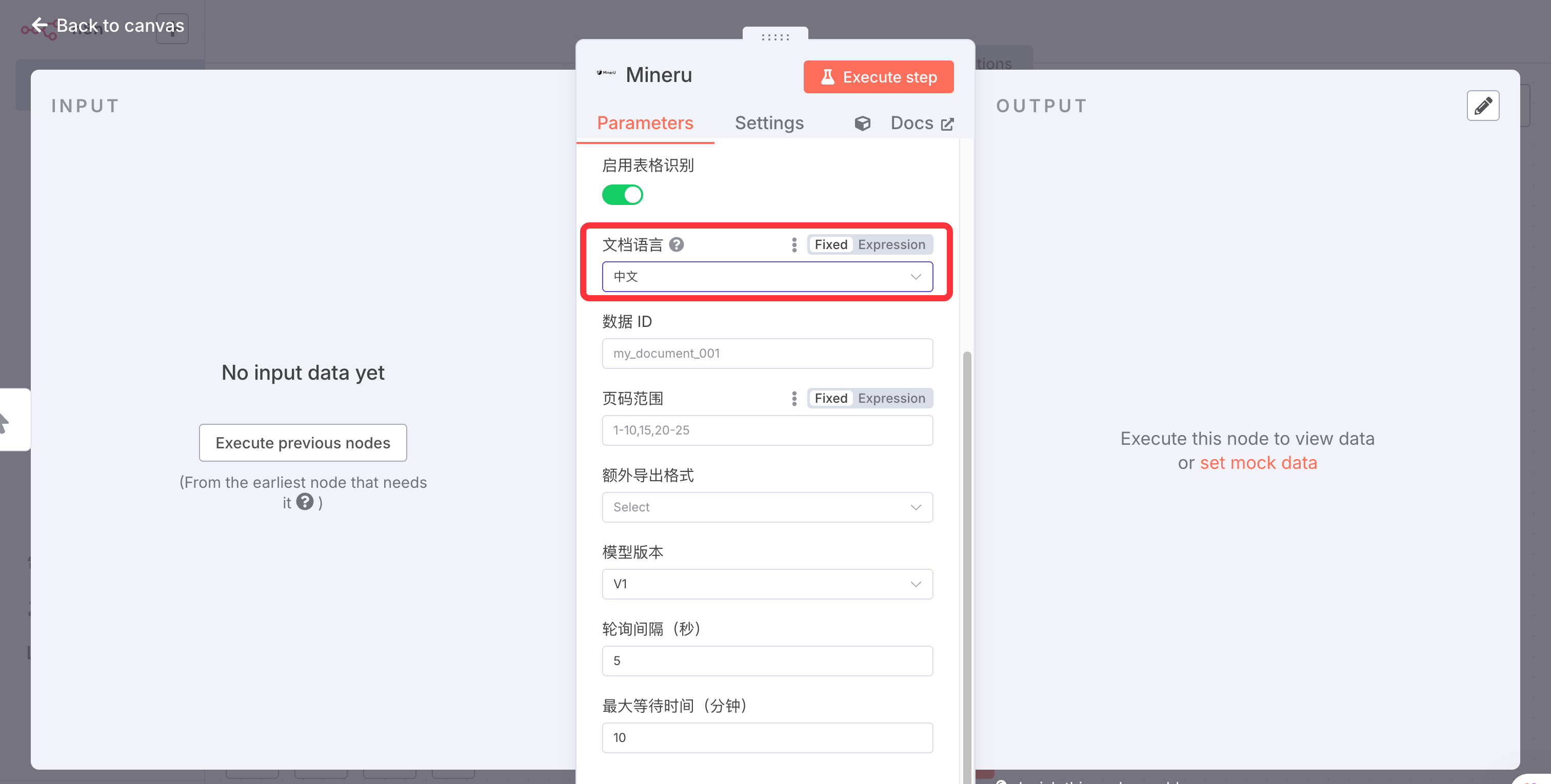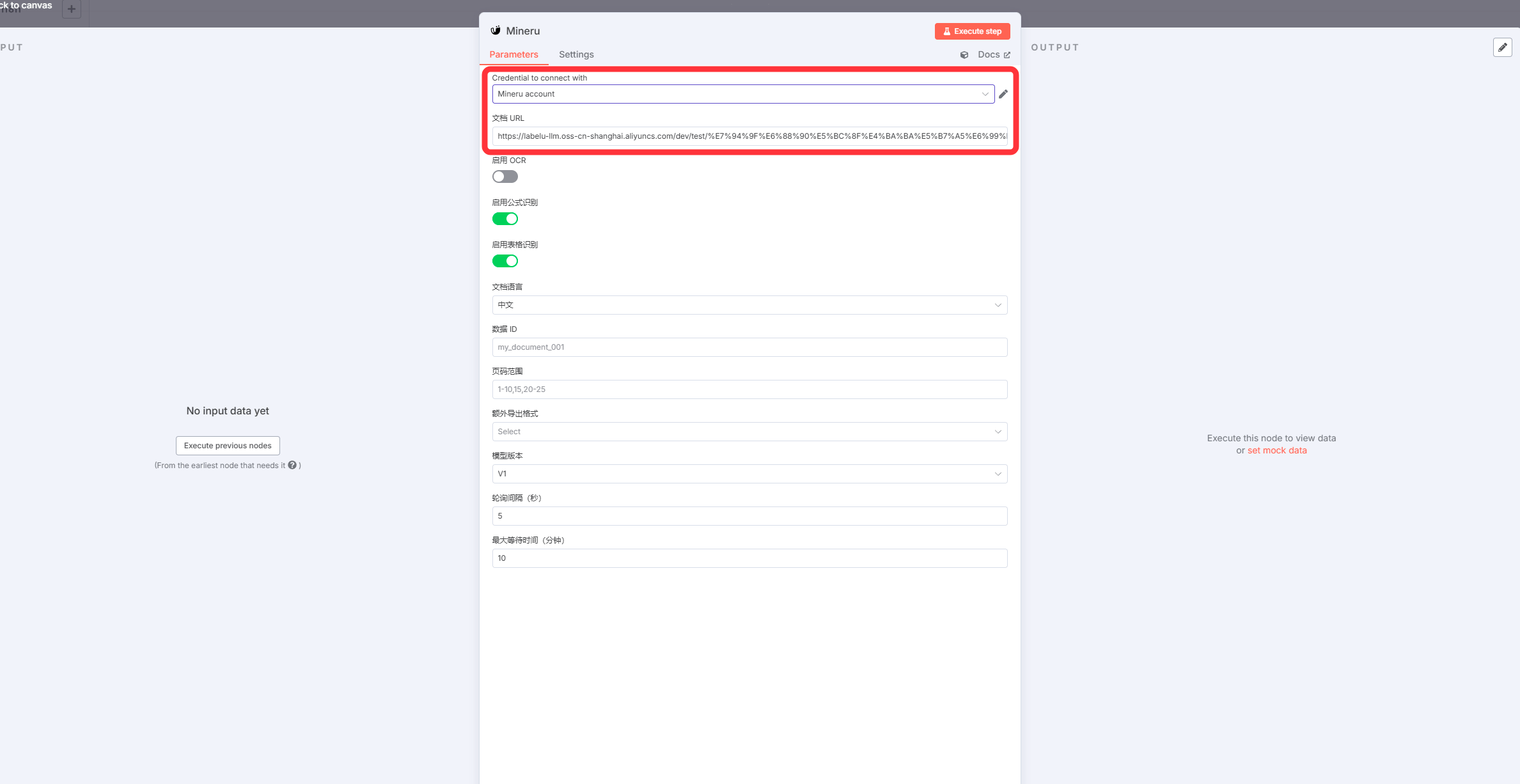 目前,MinerU 已将其强大的文档解析能力封装为 n8n 节点,用户在搭建工作流时,可以更加便捷地处理复杂的文档解析任务。