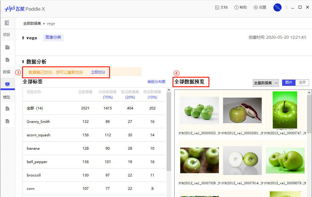 +④您可在「数据分析」模块按规则预览您标注的数据集,双击单张图片可放大查看。