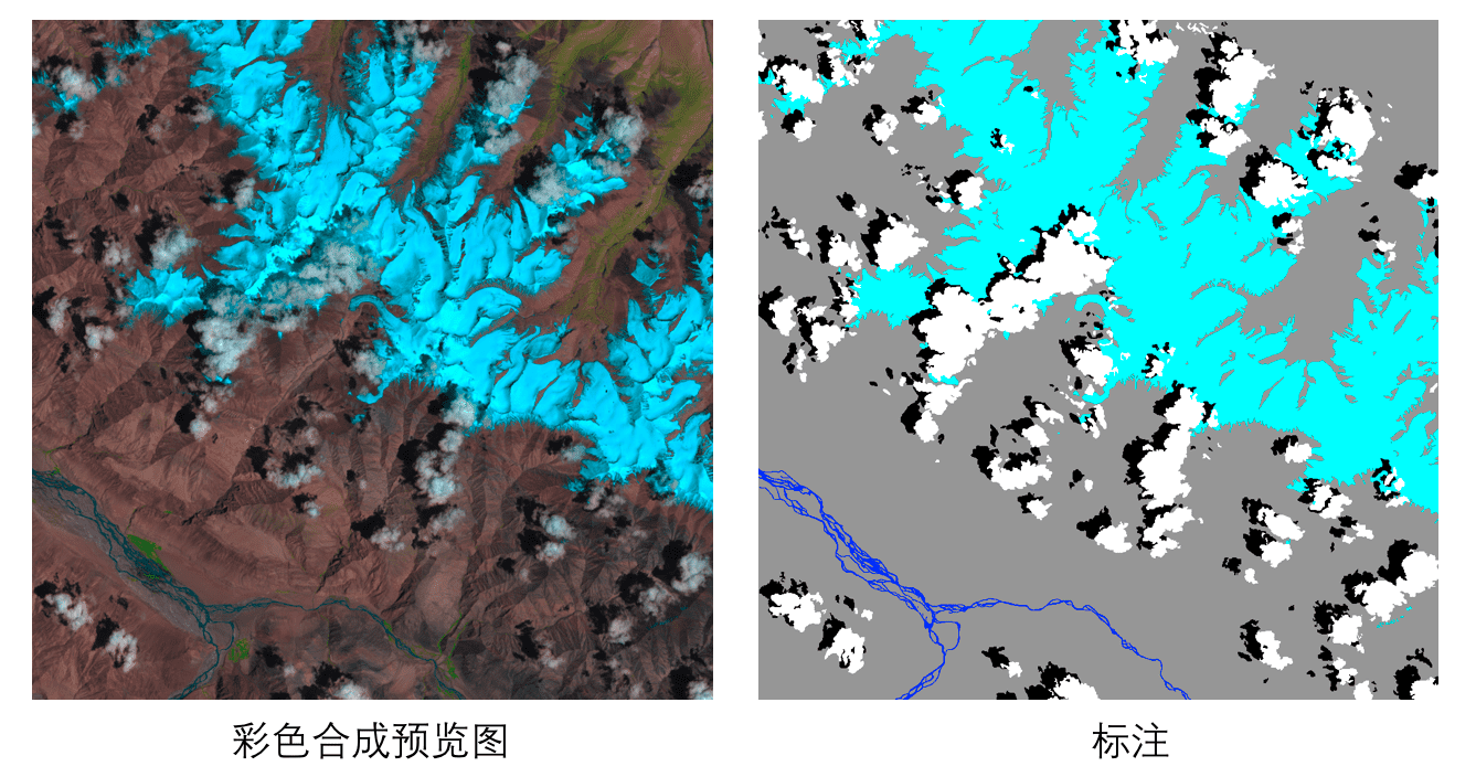 其中data目录存放遥感影像,data_vis目录存放彩色合成预览图,mask目录存放标注图。